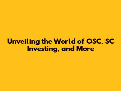 Unveiling The World Of OSC, SC Investing, And More