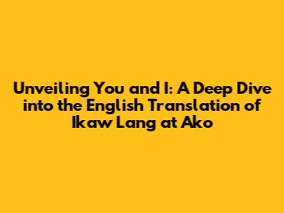 Hey everyone! Ever stumbled upon a song that just hits you right in the feels? Well, for many Filipinos, that song is undoubtedly "Ikaw Lang at Ako." It's a classic, a love song that's been woven into the fabric of countless relationships. But what about those who don't speak Tagalog? How can they experience the magic of this timeless ballad? That's where the English version, often referred to as "You and I," steps in. This article is your ultimate guide, a deep dive into the English translation of "Ikaw Lang at Ako," exploring its nuances, its impact, and why it continues to resonate with so many hearts. We'll be breaking down the lyrics, comparing them to the original, and uncovering the emotional core that makes this song so special, even in translation.