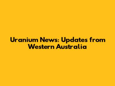 Uranium News: Updates From Western Australia