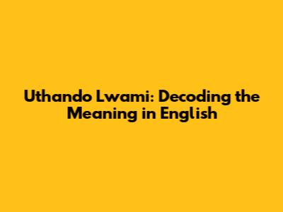 Uthando Lwami: Decoding The Meaning In English