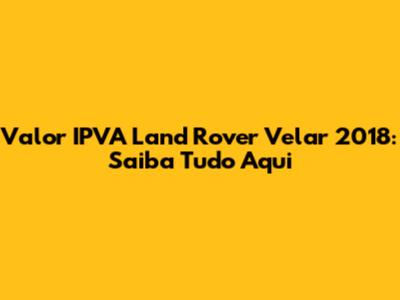 Valor IPVA Land Rover Velar 2018: Saiba Tudo Aqui