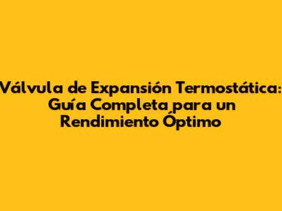 Válvula De Expansión Termostática: Guía Completa Para Un Rendimiento Óptimo