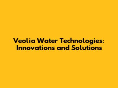 Veolia Water Technologies: Innovations And Solutions