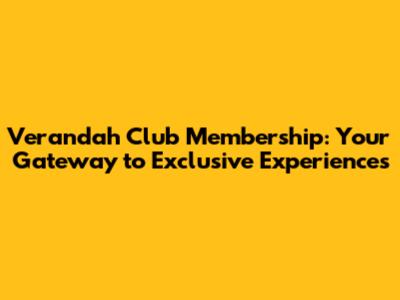 Verandah Club Membership: Prices & Perks Unveiled