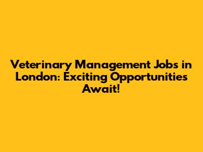 Veterinary Management Jobs: Exciting Opportunities In London
