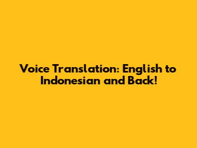 Voice Translation: English To Indonesian And Back!