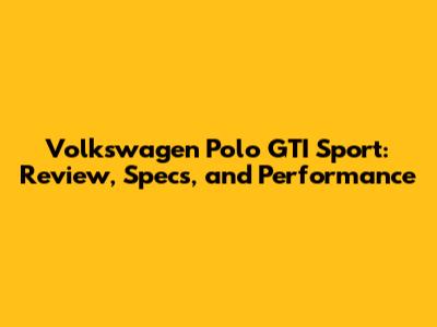 Volkswagen Polo GTI Sport: Review, Specs, And Performance