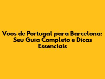 Voos De Portugal Para Barcelona: Guia Completo E Dicas