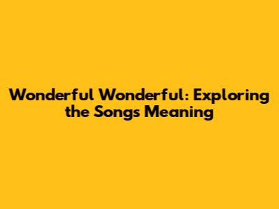 Wonderful Wonderful: Exploring The Song's Meaning