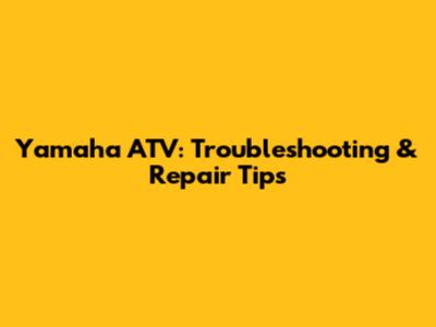 Yamaha ATV: Troubleshooting & Repair Tips