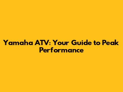 Yamaha ATV: Your Guide To Peak Performance