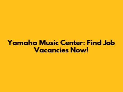 Yamaha Music Center: Find Job Vacancies Now!
