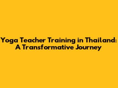 Yoga Teacher Training In Thailand: A Transformative Journey