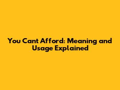 You Can't Afford: Meaning And Usage Explained