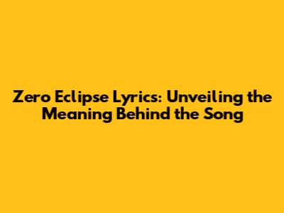 Zero Eclipse Lyrics: Unveiling The Meaning Behind The Song